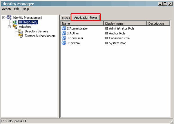 | 9 . | Click Application Roles. Examine the roles available in the Administration Tool.![]() |