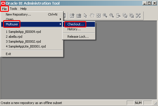 | 1 . | For this tutorial, SampleApp_BI0009.rpd, will be modified in the MUDE. You can use the most current offline version of your repository. In the Administration Tool, click File > Open > Offline (or you can select the repository from the recent repository list). ![]() |