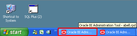 | 1 . | Open the Administration Tool. Click Start > All Programs > Oracle Business Intelligence > BI Administration.![]() Note: When you first start the Administration Tool, a DOS window appears. Keep this window open while you work. You can minimize the window to avoid accidentally closing it. |