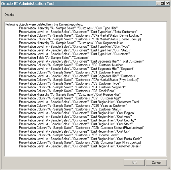 objects are not part of the new repository.![]() Click File > Exit to close the Administration Tool. |
